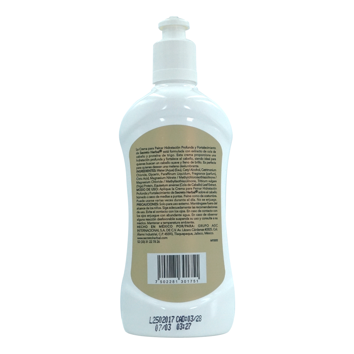 Modo de empleo: Aplíquese una pequeña cantidad sobre la palma de la mano, frote y distribuya sobre el cabello aplicando de medios a puntas.
