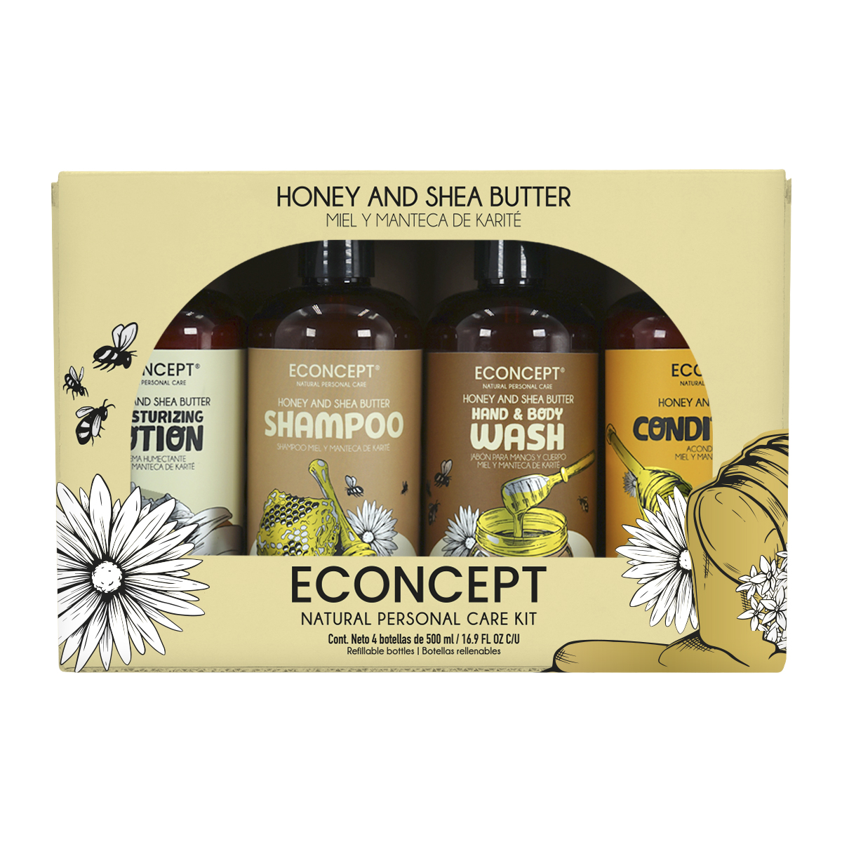Kit de Econcept de shampoo, crema, jabon para manos y acondicionador
